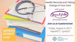 You’re invited! Join the “Health Records and Taking Charge of Your Care” #patientchat Fri 8/4 1pmET w/@myopennotes buff.ly/2uNqCee