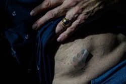 Hank, 79, has had seven shoulder surgeries, lung cancer, open-heart surgery, a blown-out knee and lifelong complications from a clubfoot. He has a fentanyl patch on his belly to treat his chronic shoulder pain. He replaces the patch every three days, supplementing the slow-release fentanyl with pills containing hydrocodone.